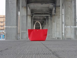 色とりどりのフラッグから、世界にたったひとつしかないオリジナル・フラッグバッグが ついに完成しました! 約2ヶ月間の屋外展示を終えた、フラッグには傷や汚れも残っていますが、むしろ味わい 深い「存在証明」にすら感じられます。