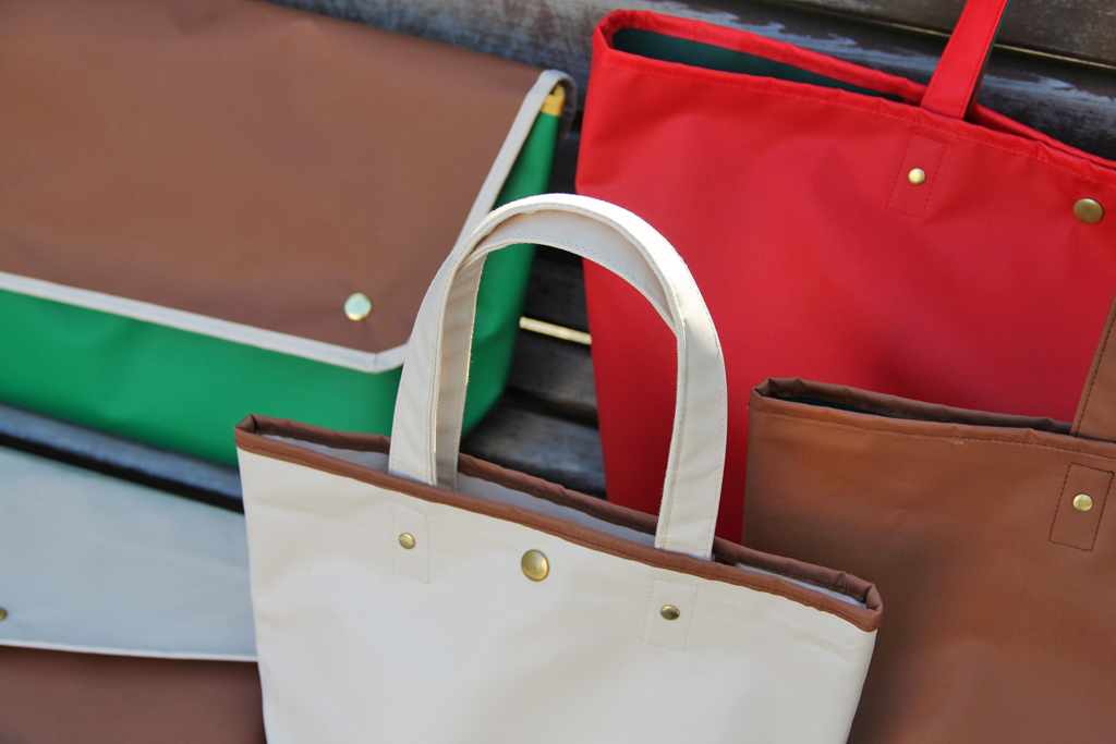 蝉 semiの定番トートバッグの他にも、フラップ付きショルダーバッグ・MacBook caseなど出展に向け、